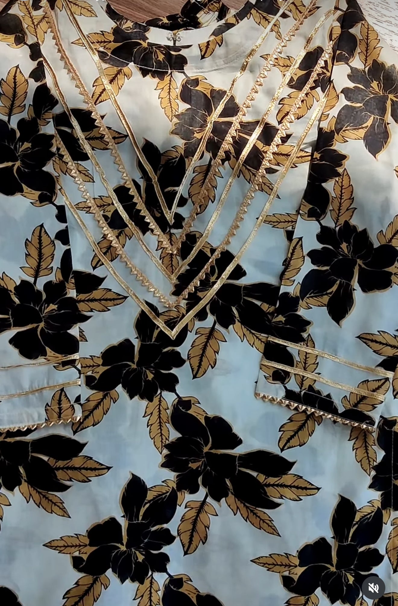 Twirl into festive fun with our Black & Gold Gharara Suit! This playful summer lawn printed ensemble features a unique blend of black, brown, and gold tones that stand out at any celebration. Complete with a matching dupatta, this gharara suit lets little fashionistas shine while staying cool and comfortable all season long!