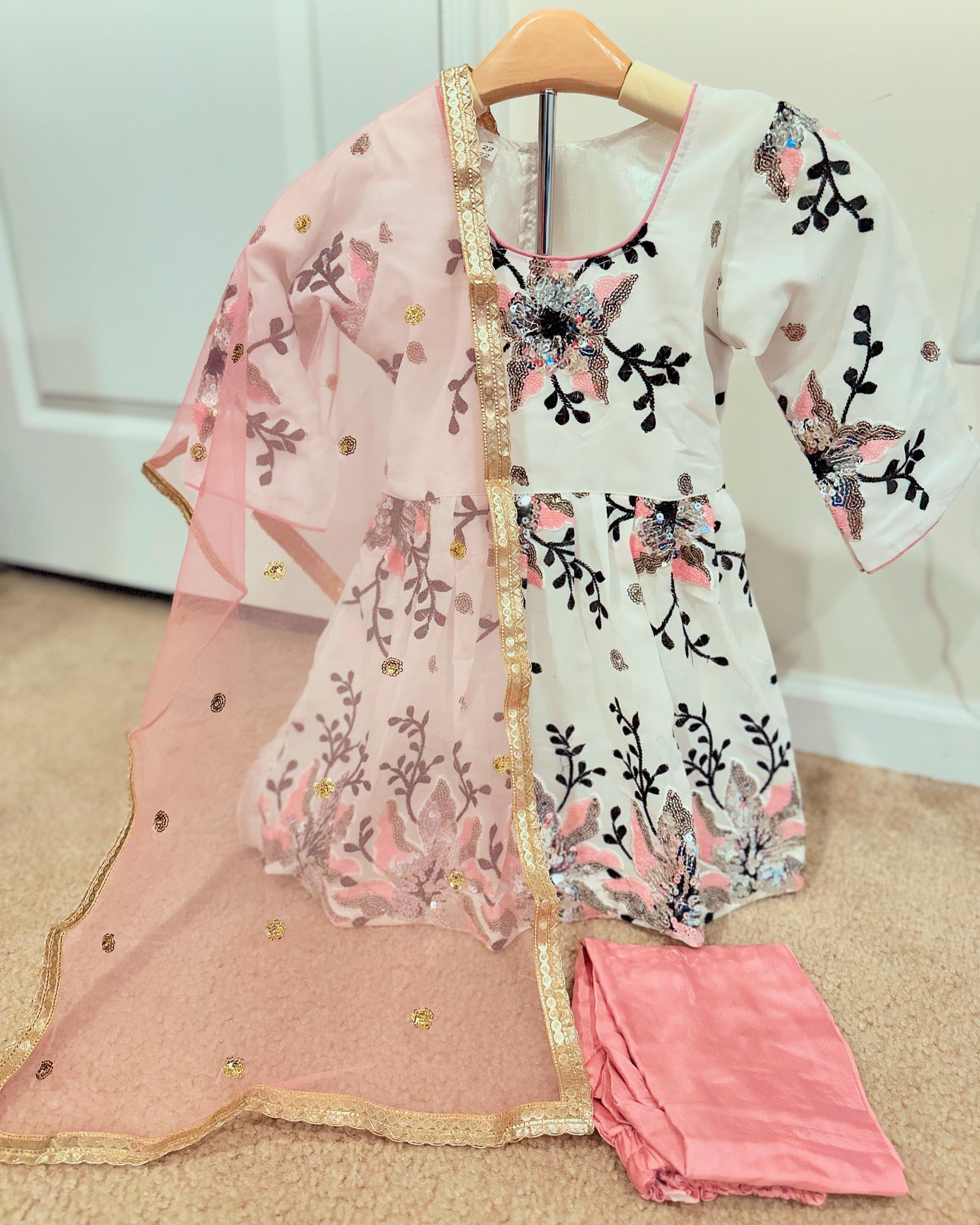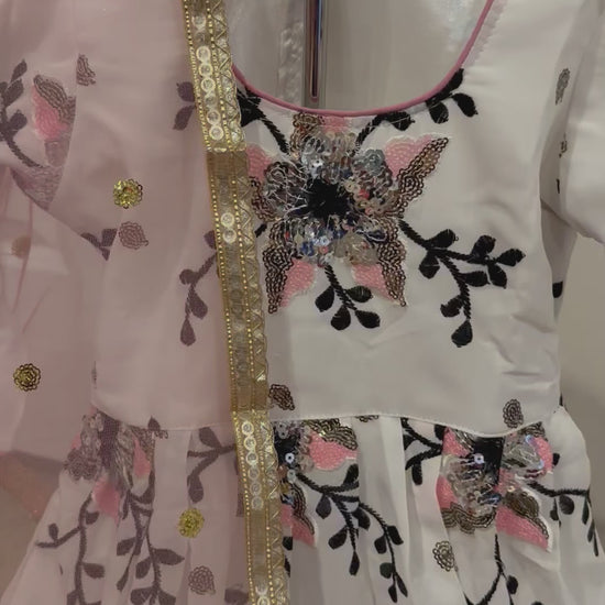 Upgrade your little girl's wardrobe with our Girls White Floral Suit. Made from high-quality georgette fabric in India, this suit exudes elegance and sophistication. Perfect for parties and special occasions, its white floral design will make your girl stand out in style.