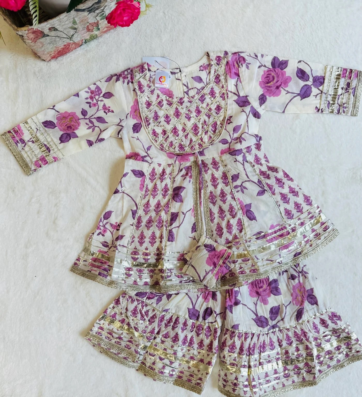 Make your little one sparkle in the Jalebi Sharara ethnic set! Crafted from soft, breathable cotton, this vibrant outfit features a flared Kurti that twirls with every step and a charming Sharara adorned with delicate laces. Perfect for festivals, weddings, or any special occasion, it’s easy to wear and gentle on the skin—guaranteeing comfort and fun all day long. Handwash with like colors to keep it looking fresh and bright!