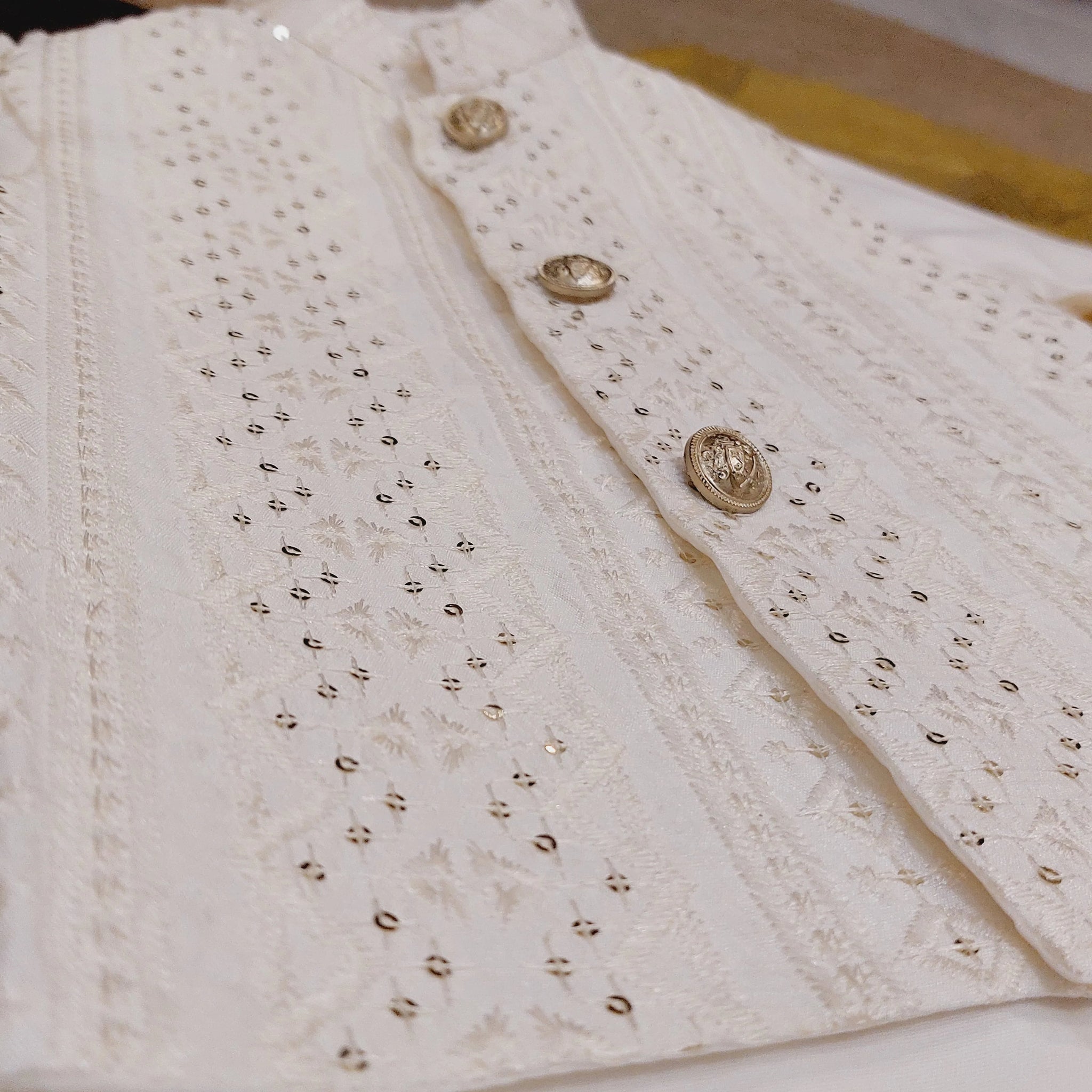 This Grey Waistcoat Setis a traditional Pakistani outfit for boys, made in Pakistan with high-quality cotton fabric. The kurta pajama and waistcoat combination offers a sophisticated look, making it perfect for special occasions. Embrace the comfort and style of this elegant garment.
