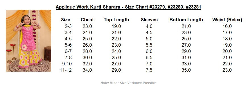 Add a pop of color to your little girl's wardrobe with our Yellow Pink Daisy Sharara set. Featuring a playful Leheriya sleeveless kurta, printed sharara, and a plain dupatta, this set is perfect for any occasion. Let your little one stand out and have some fun in this quirky and vibrant outfit.